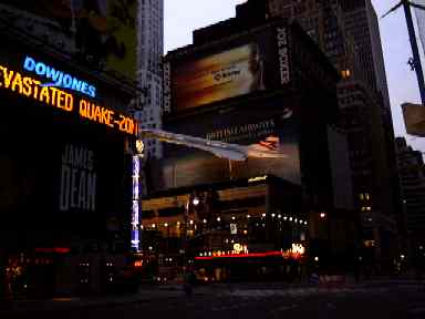 朝の7時前だと言うのに、Times Squareにはさんさんとネオンが輝いていた。オーロラビジョン(ふるい?)も延々とコマーシャルを流しつづける。